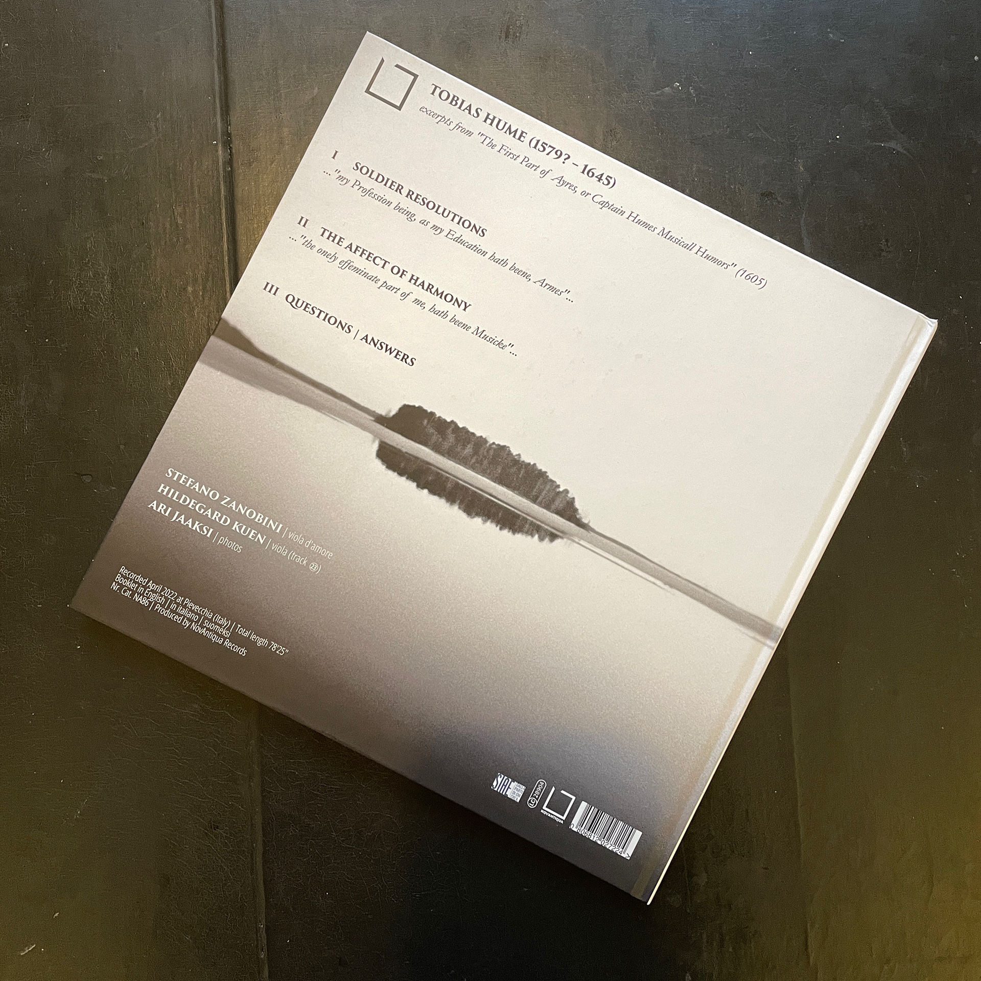 An LP sized fine art photography book and a CD of Tobias Hume's music, played by Stefano Zanobini. Bringing back album art!