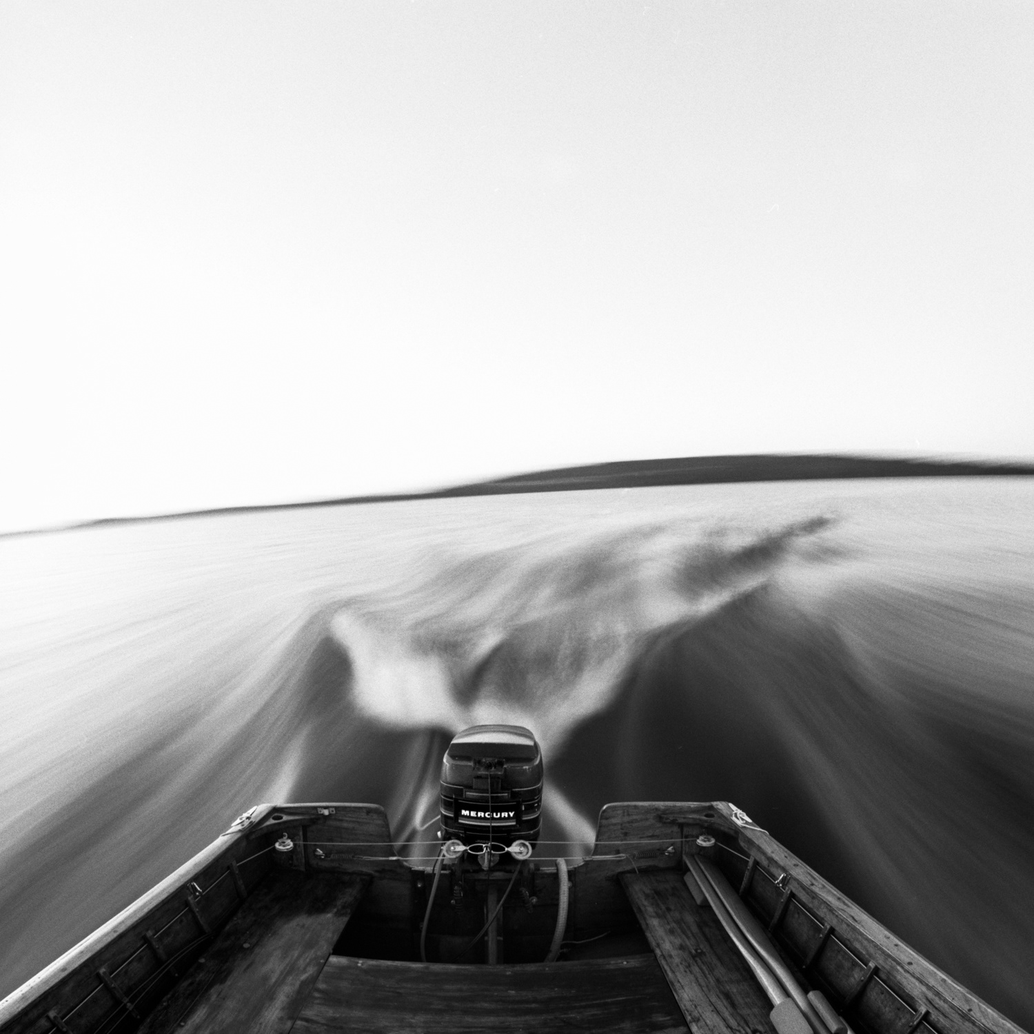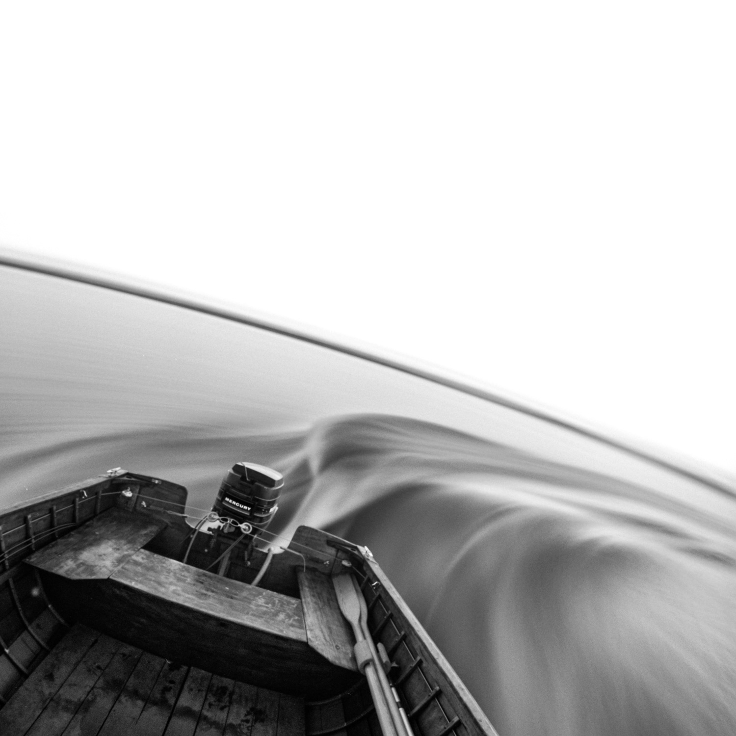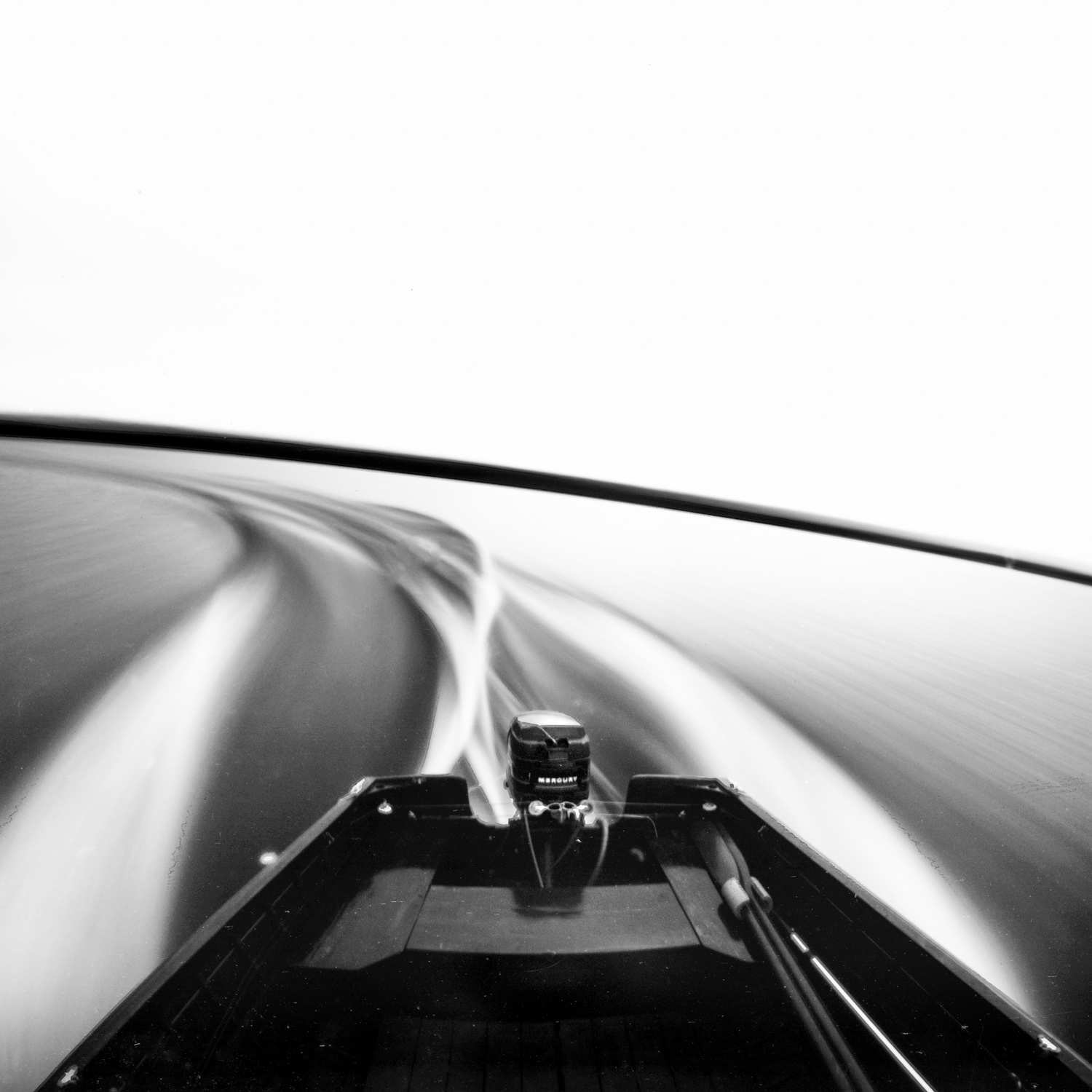 Using long exposure from the moving boat, I capture time and motion as physical presence. The water blurs, the horizon shifts, movement becomes visible. What lasts seconds in real time stretches across the frame.